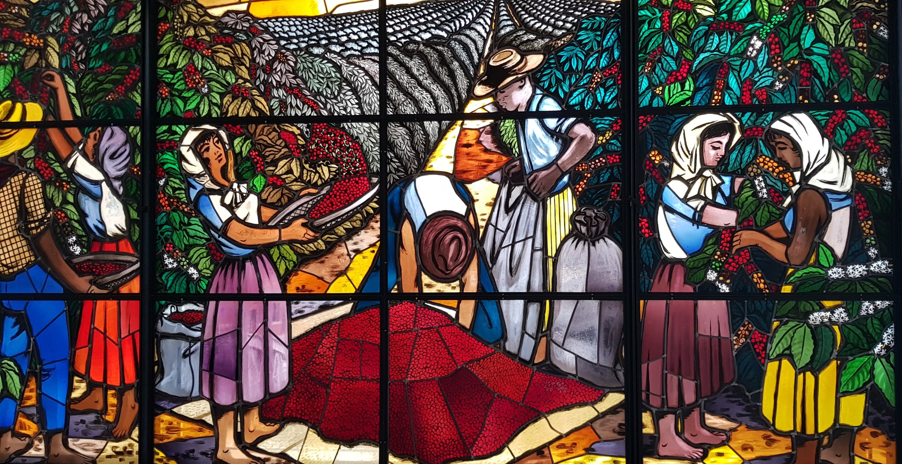 Hier mein Hotel Ameron in der Speicherstadt am Abend, mit dem Übergang vom Hotel in den Restaurantbereich. Im gleichen Komplex ist die Kaffeebörse untergebracht. Die Ornamentfenster dieses Bereiches erzählen einiges über Kaffee und seine Erzeugung.