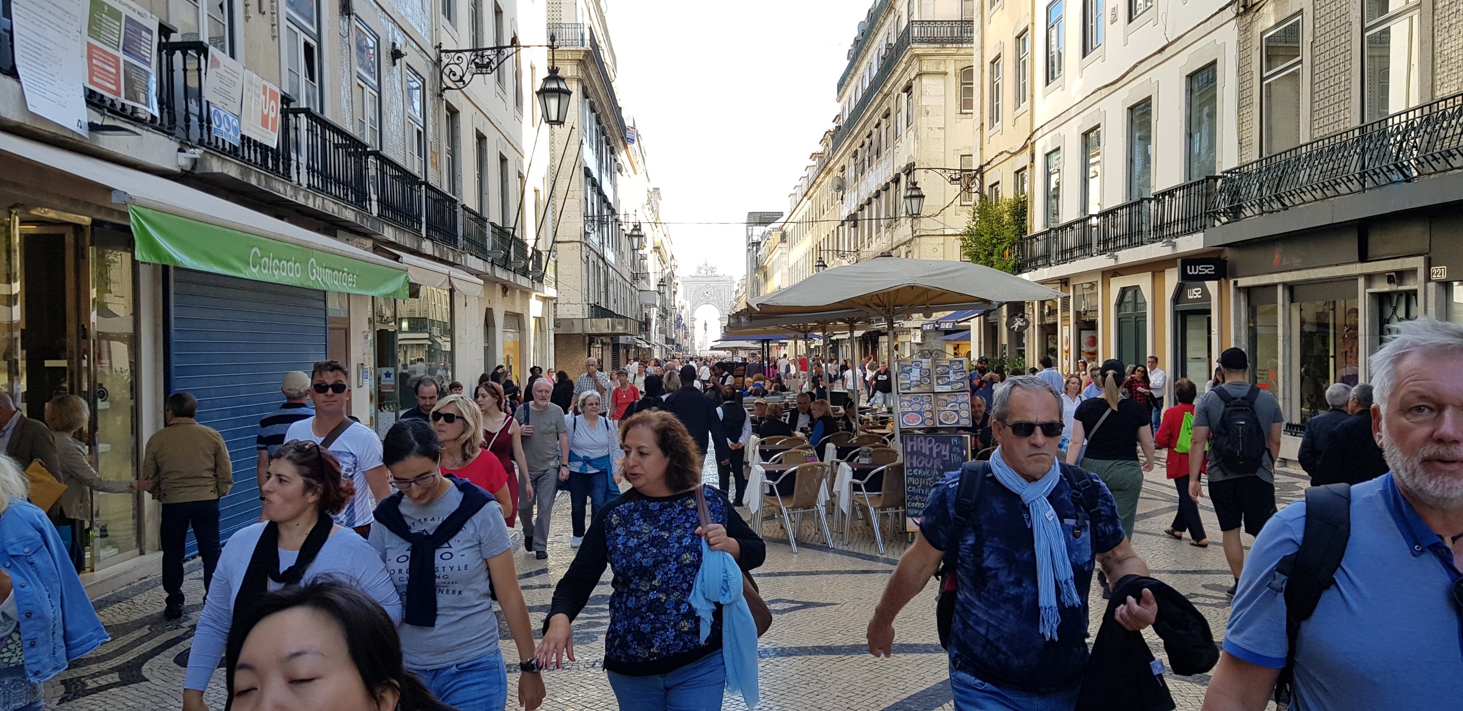 Vor der offiziellen Rundfahrt einen Spaziergang durch die Altstadt von Lissabon gemacht. Das was es hier an schmalen Gässchen gibt, habe ich noch nirgendwo anders gefunden. Als Beispiel hier die schmalste Gasse, in der die Breite des Touristen nicht zu groß werden darf!