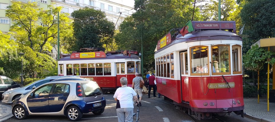 So, nun bin ich gerade vom Ausflug durch Lissabon zurück. Eine wunderbare Fahrt mit der uralten Straßenbahn Linie 28 führte durch die gesamte Altstadt. Und so sieht sie aus, die Tram.