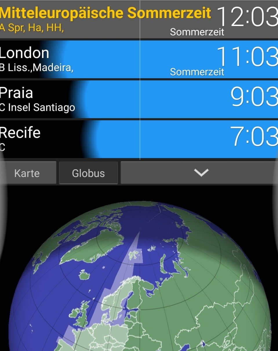 Meine Smartphone Zeitzonen-Überwachung habe ich entsprechend unserer Reiseroute komplett in der APP Polyuhr vorbereitet.