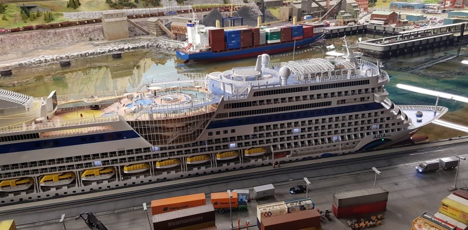 Wo früher hauptsächlich Kaffee und Gewürze gelagert und gehandelt wurden, befinden sich heute Firmensitze, Hotels, Museen und touristische Attraktionen, wie das Miniatur Wunderland. Nachfolgend mit einer Szene vom Cruise Center.