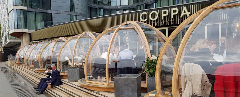 Während der Mittagspause in London fielen uns diese im Volksmund der Londoner als Käseglocken bezeichneten Mini-Pavillons auf.