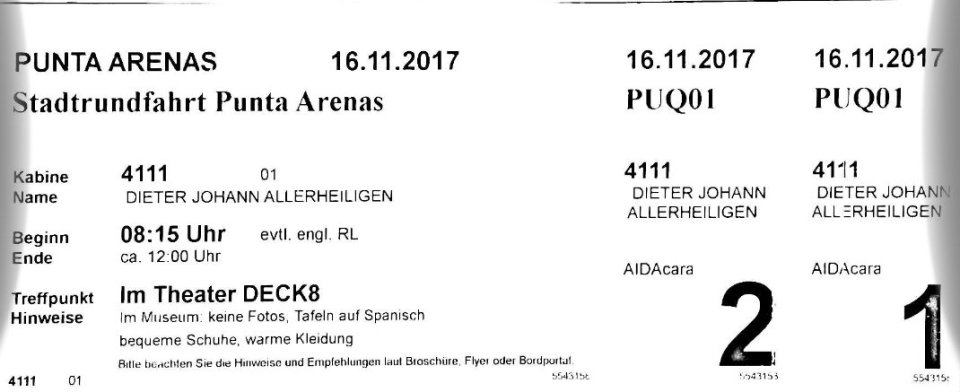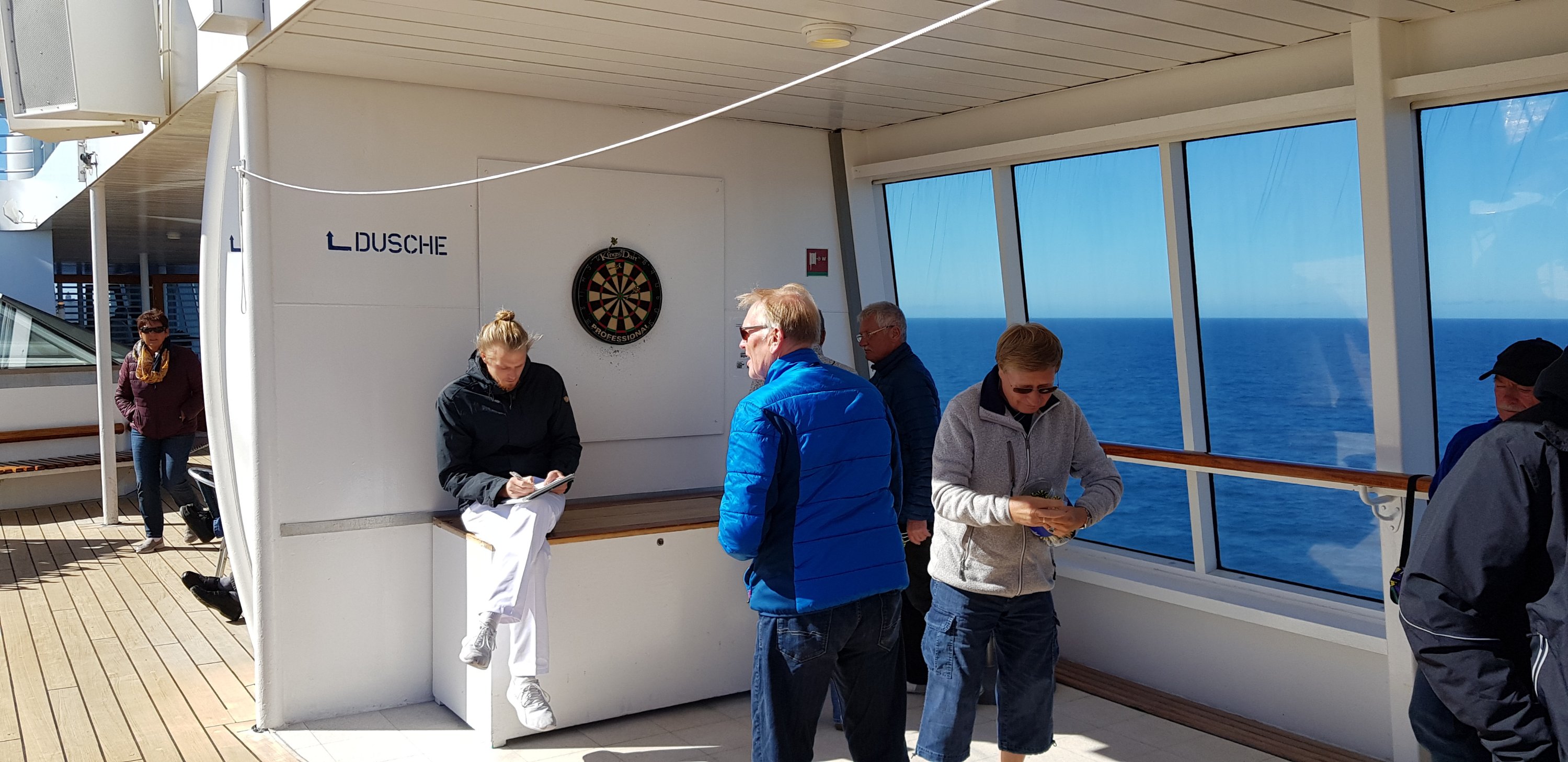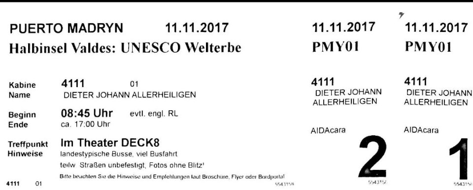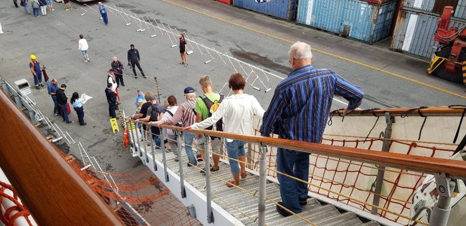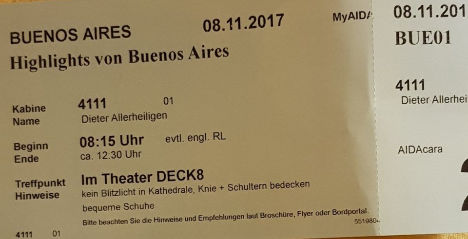 Von gestern bleibt lediglich eine kleine Episode nachzutragen, die sich nicht im Theater des Schiffes zugetragen hat. Bei Rückkehr vom Ausflug wird ja, wie jedes Mal beim Betreten des Schiffes, eine Art Flugzeugkontrolle inkl. Körper- und Gepäckscanner durchgeführt.
