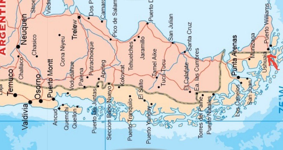 Frisch zurück vom 8h-Ausflug, gibt es einiges zu berichten. Wo genau haben wir uns aufgehalten? Nachfolgend die südliche Spitze von Argentinien, aber quergelegt mit der Markierung unseres Zielgebietes.