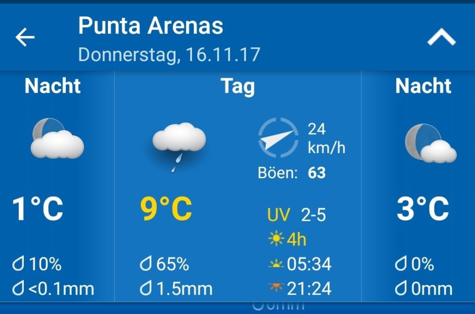 Nächste Etappe 947 sm (1.754 km) bis Puerto Montt, Chile