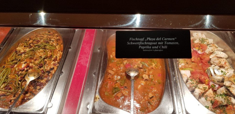 Thema Speisen an Bord. Ich wurde in der Zwischenzeit gefragt, ob ich hier überhaupt etwas zu Essen bekomme, da ich mich zu diesem Thema überhaupt noch nicht geäußert habe. Tatsache ist, wir bekommen reichlich und gut, hier einige, wenige Beispiele.
