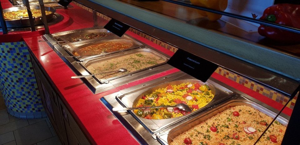 Auf Deck 8 und 9 gibt es die beiden großen Restaurants. Geboten werden täglich ab 7:30 Uhr Frühstück, auf Wunsch mit Omelett, Rühr- und Spiegelei, etc..