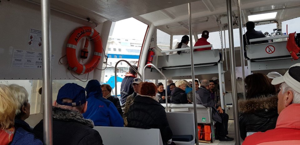Die Hin- und Rückfahrt mit einem Tenderboot ging problemlos von statten. Im Tenderbetrieb können auf den Booten 75 Personen bequem Platz finden, im Rettungsfall müssen sich ca. die doppelte Anzahl Menschen den Platz teilen.