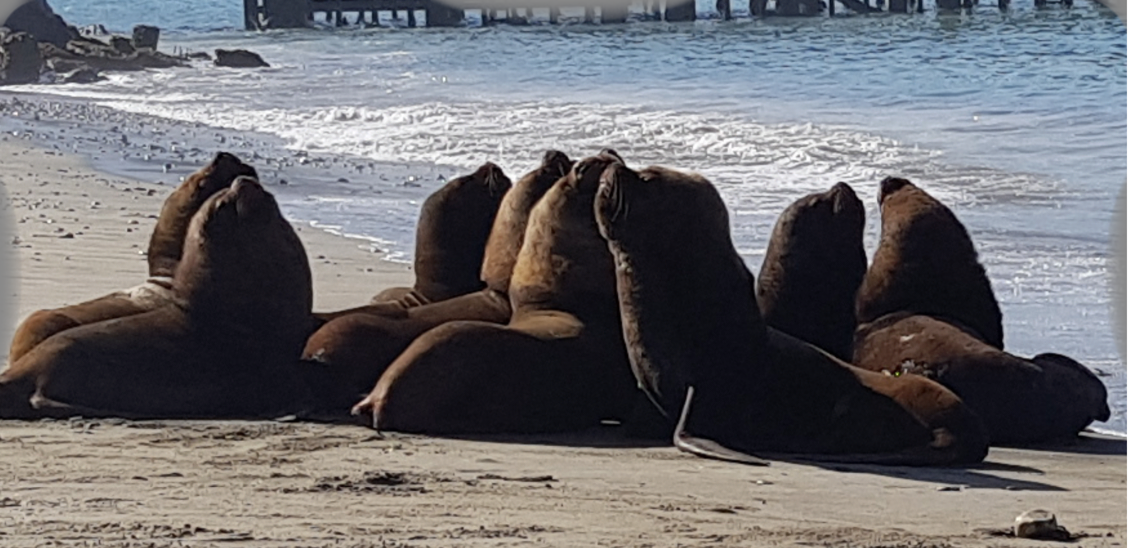 Gegen Ende der Promenade ist ein großes Kaufhaus. hier möchte ich versuchen einen speziellen Adapter für mein derzeitiges Smartphone zu bekommen. Er soll in der Lage sein, Daten aus meinem Galaxy Note 8 auf einen USB-Stick zu übertragen. Zunächst einmal gehe ich aber an den Strand, um die dort liegenden Seelöwen aus unmittelbarer Nähe bewundern zu können. Zwei Rudel haben sich dort in freier Wildbahn, am Strand gemütlich niedergelassen. So früh sind sie noch relativ träge.