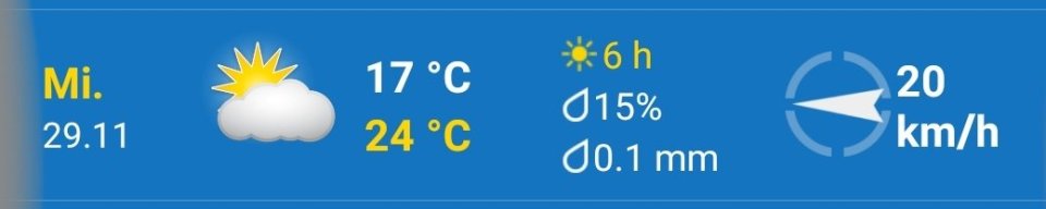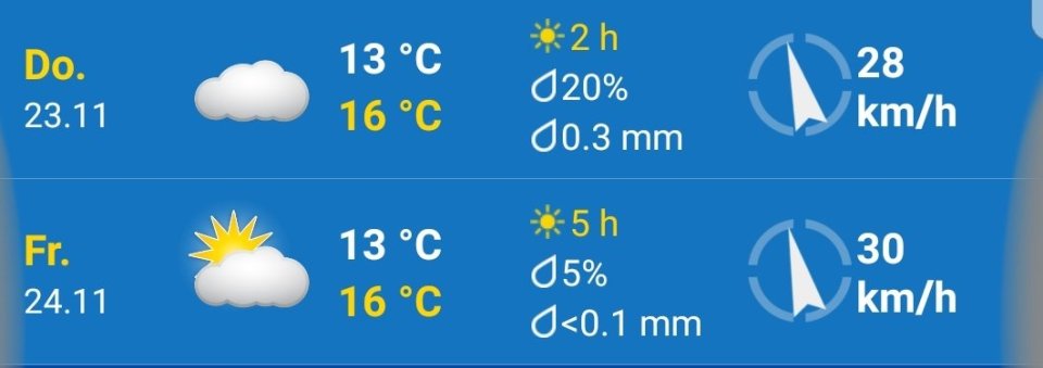 Wetterbericht vom 23.+24.11. um 6.30 Uhr für Robinson Crusoe Insel