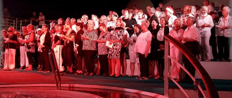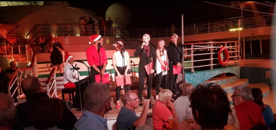 Nachzutragen von gestern Abend ist das Zeitsprung-Ereignis auf dem Pooldeck mit Weihnachtsmarkt und Adventssingen.