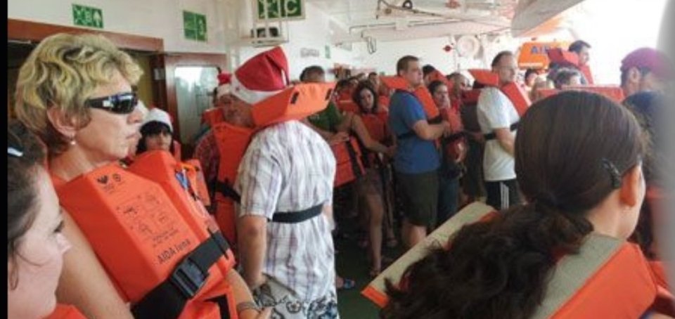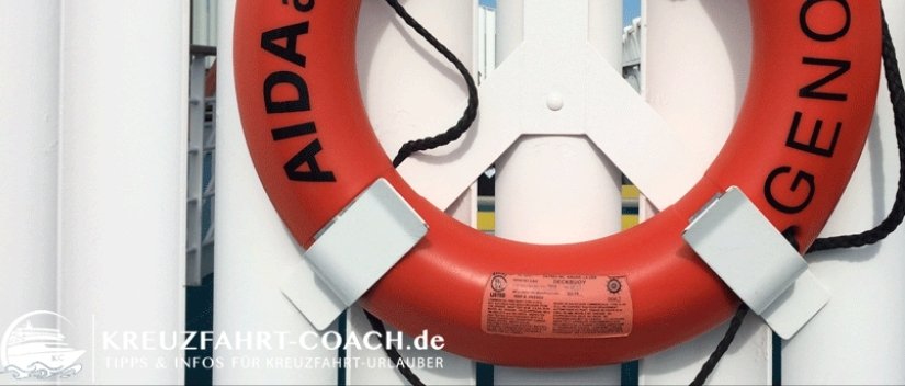 Pünktlich mit Bordkarte und mit angelegter Rettungsweste muss ich zu der mir zugeteilten Sammelstation auf Deck 6 Musterstation C (auch auf Bordkarte, Rettungsweste und Innenseite der Kabinentür ersichtlich) erscheinen.