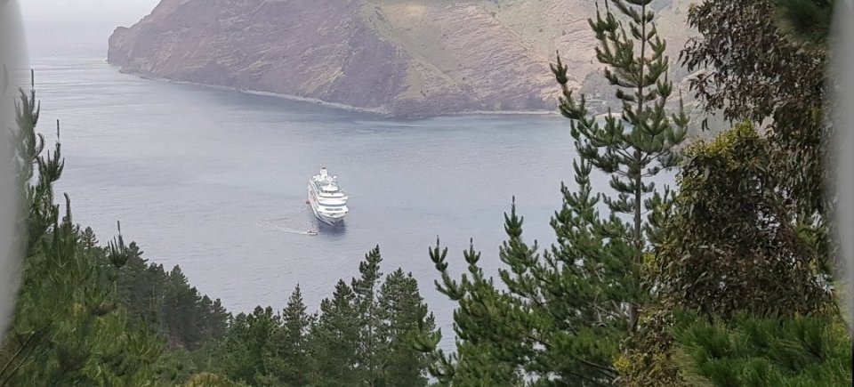 Auf zu einer Bergwanderung auf der Robinson Crusoe Insel. Im Tenderbetrieb gegen 11:00 Uhr nach „San Juan Bautista“, dem einzigen Ort hier auf der Insel, übergesetzt.