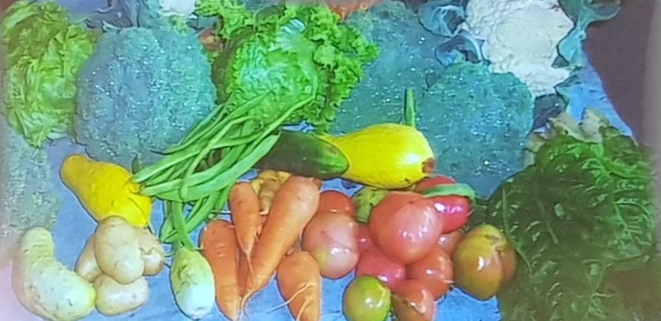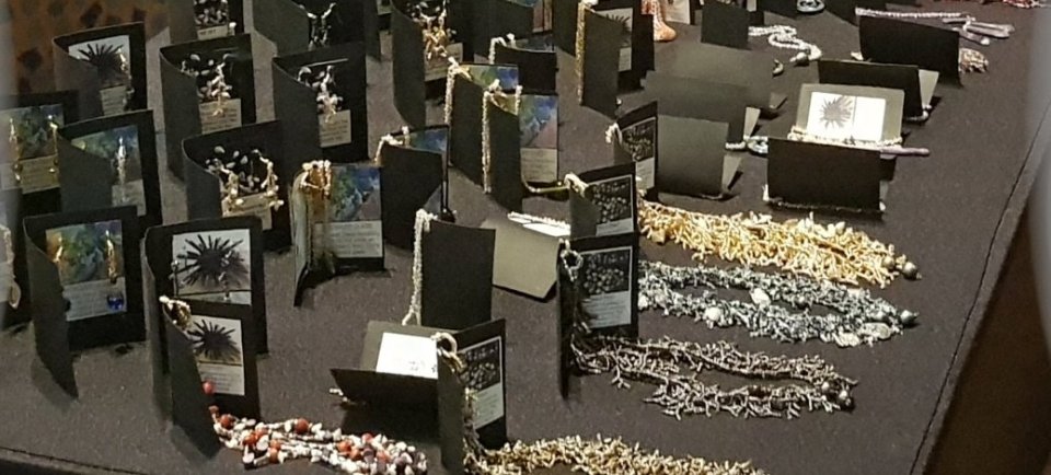 Das Haus eines Künstler-Ehepaares mit Tochter bot Köstlichkeiten aus diesem Naturgarten zum Probieren an. Kaufen konnte man darüberhinaus selbstgefertigte und bemalte große Schals mit Inselmotiven, wie im folgenden Foto zu sehen.