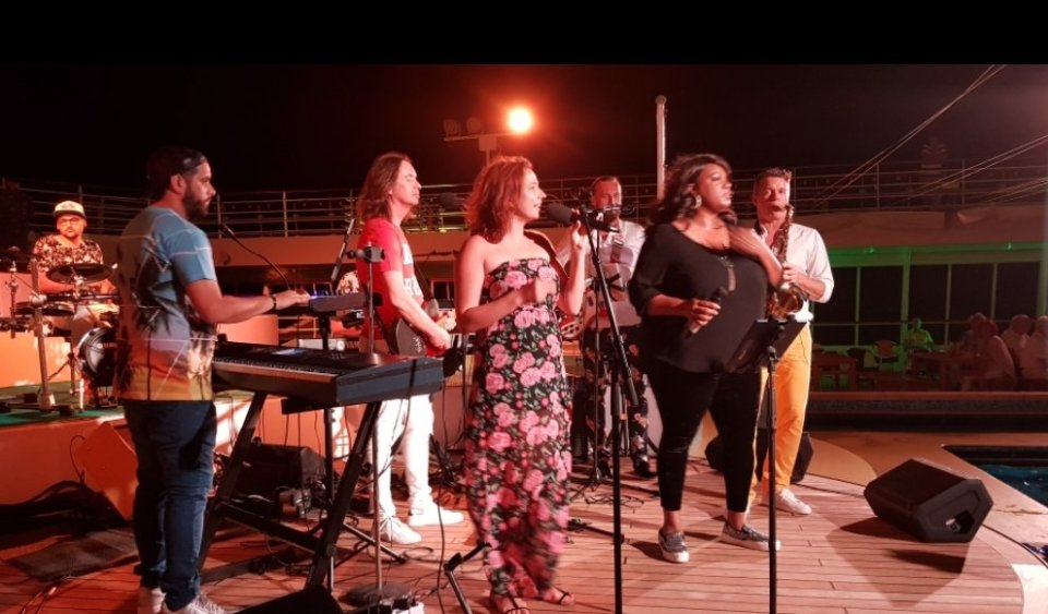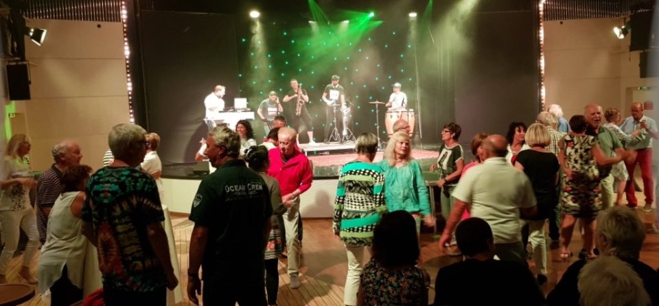 Sie haben gehalten, sonst wäre kein Nachtrag mehr möglich geworden. Nachzutragen bleibt nämlich von gestern Abend Livemusik vom Feinsten auf dem Pooldeck. Terri Green, ihr Saxophonist Toddi und die Musiker der Liveband „The Band Mates“ tun sich zu einer großen Jamsession zusammen.