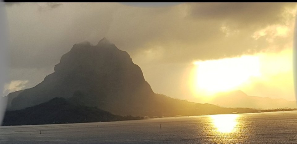 Und heute morgen die erste Begrüßung von Bora Bora, von Deck 11 aus fotografiert um 5.45 Uhr Ortszeit.