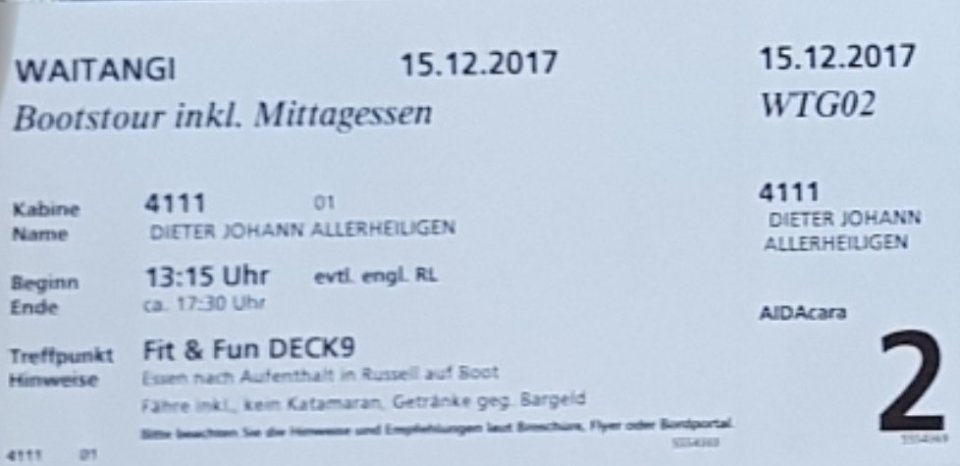 - Möglichkeit zur individuellen Freizeit oder Rückfahrt zum Schiff (Fähre nach Paihia ist enthalten)