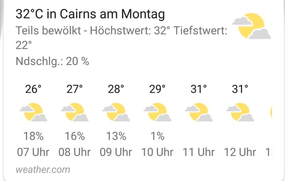 - Wettervorhersage heiter/bewölkt, 28 °C