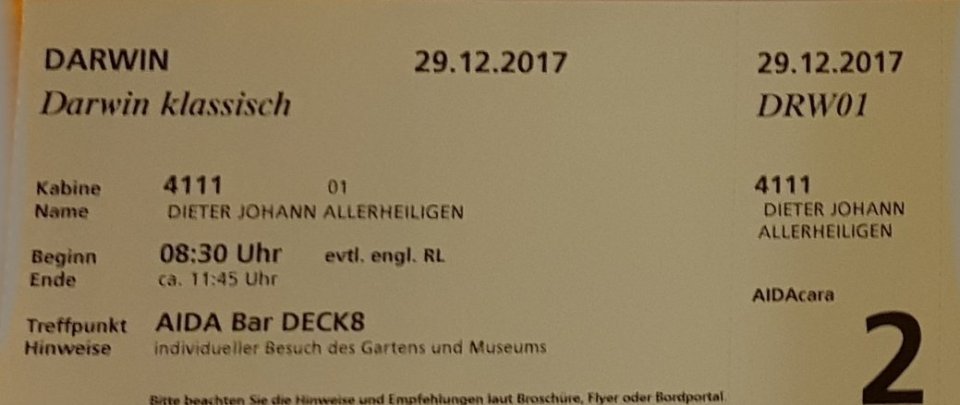 Die Kontrolle wird heute von 09:00 bis 12:00 Uhr sowie von 14:00 bis 17:00 Uhr in der Cara Lounge auf Deck 9 stattfinden. Mitzubringen sind Reisepass und die ausgefüllte Einreisekarte, die auf die Kabine geliefert wurde.