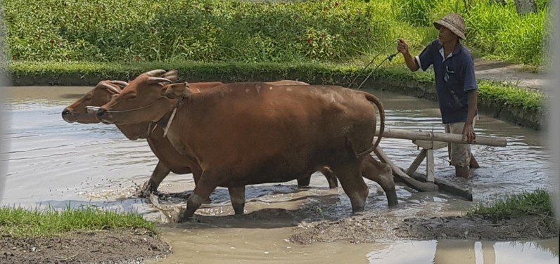 Touristisch weitaus weniger erschlossen als Bali ist hier die Landwirtschaft noch immer der wichtigste Erwerbszweig, z.B. der Reisanbau.
