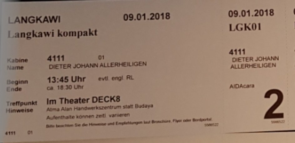 WICHTIG: Heute 16 Uhr den Friseur nicht vergessen, der arbeitet auf der AIDAcara auch an Sonntagen. Wenn ich jetzt nicht hingehe, wedeln die Hunde mit dem Schwanz und wollen mit mir spielen.