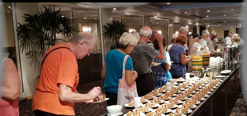 Liebe Gäste, lassen Sie das Frühstück heute lieber ein bisschen kleiner ausfallen, denn den Platz in Ihrem Magen sollten Sie sich für unseren außergewöhnlichen Poolbrunch aufheben. Auf dem Pooldeck werden Ihre Offiziere und die Küchencrew ab 11:30 Uhr ein 21 Meter langes XXL-Baguette belegen.