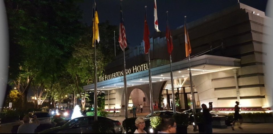 Mit einer kurzen Busfahrt zum „Fullerton Bay Hotel“ konnten wir von dort aus dem obersten Terrassen-Stockwerk die fantastische, nächtliche „Lichtorgel“ Singapur bewundern.